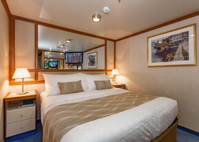 | OV - Vonkajšia kajuta / obmedzený výhľad 16,5 m². Neotvárateľné okno s obmedzeným výhľadom. Max 2-4 osoby (2 horné lôžka). | 2 780 € 1 390 € za osobu | ||