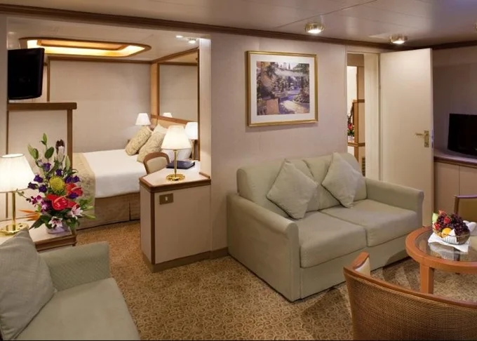 S6 - Vista Suite s balkónom 45 m² (vrátane balkóna). Max 3-4 osoby (gauč + horné lôžko). Výhody Suite. 8 616 € 4 308 € za osobu