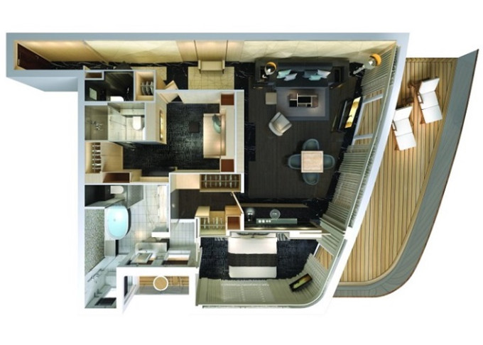 | HE - The Haven Courtyard Penthouse od 34 m² / balkón od 9 m². 17,18. paluba vpredu. Max 3 osoby, Výhody The Haven. | 26 738 € 13 369 € za osobu | ||