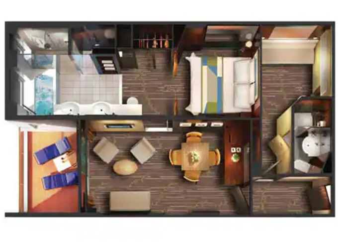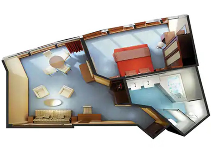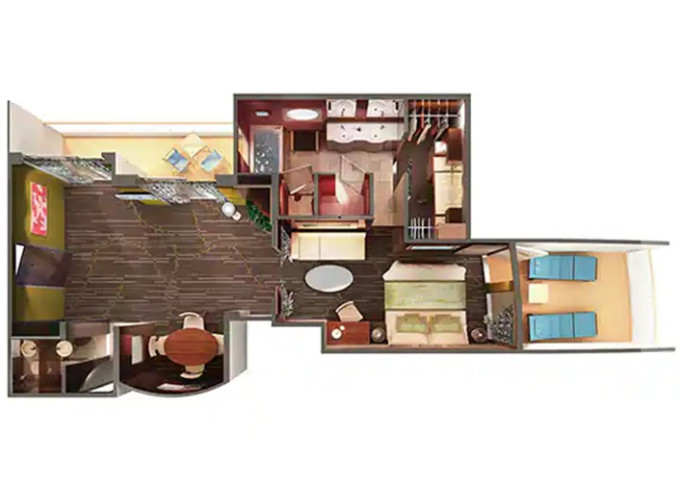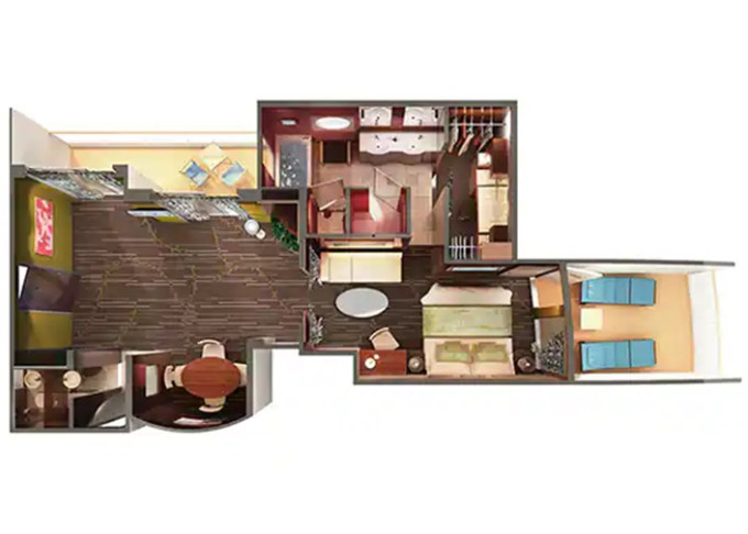 | S2 - Deluxe Owner Suite 83 m² / balkón 13 m². Vírivka. 10. paluba - vpredu. Max 4 osoby. Výhody Suite. | 16 548 € 8 274 € za osobu |