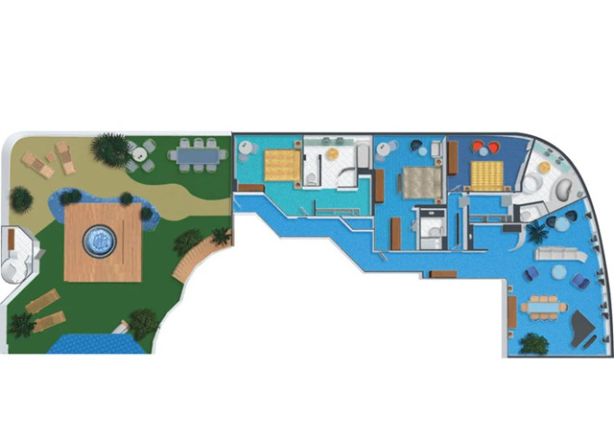 | S1 - Garden Villa - 3 spálne 621 m² / balkón 414 m². Vírivka. 14. paluba - stred. Max 7 osôb. Výhody Suite. | 35 108 € 17 554 € za osobu |
