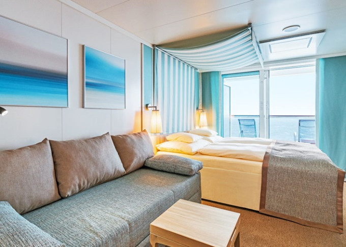 | VC - Kajuta s verandou Komfort PREMIUM od 20 m² + balkón od 6 m². 5,8,9. až 15. paluba. Max 4 osoby. Cenový model Premium. | 3 080 € 1 540 € za osobu | ||
