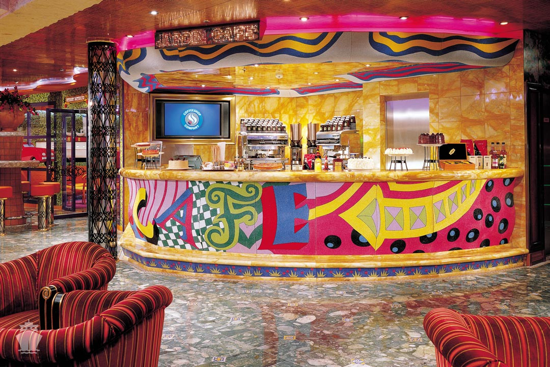 - Čapovaná voda, limonáda, ľadový čaj, káva, čaj, kakao z automatov v hlavnej reštaurácii Main Dining Room a bufetovej 24/7 reštaurácii Lido