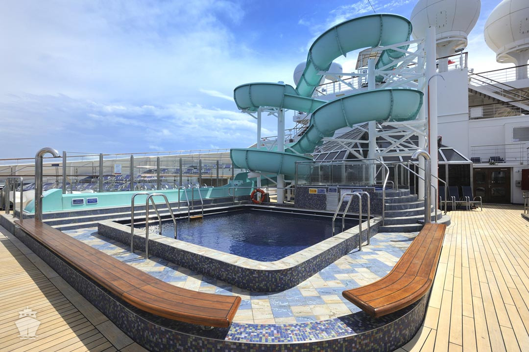 - Využívanie fitness centra, sauny, bežeckej dráhy, bazénov, víriviek, tobogánov a vodného parku (na vybraných lodiach), mini golf, basketbal, volejbal, stolný tenis, knižnica