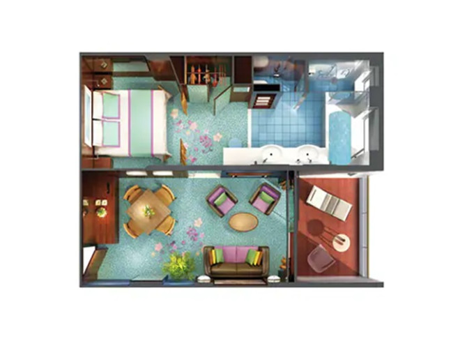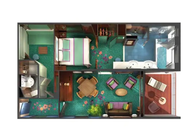 | S4 - Deluxe Family Suite - 2 spálne 50 m² / balkón 5 m². Výhody Suite. 11. paluba - vpredu, stred. Max 6 osôb. | 9 598 € 4 799 € za osobu | ||